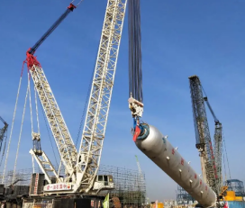 2月21日,廣東石化四聯(lián)合項目承建的330萬噸/年柴油加氫Ⅱ反應(yīng)器順利吊裝就位。該反應(yīng)器吊裝重量約1200噸、高45.6米、直徑6.7米。